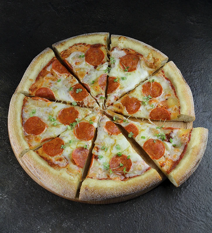 Моцарелла, пепперони, итальянские травы, фирменный томатный соус